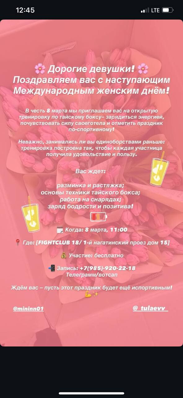 Тренировки очень нравятся, особенно тренера Никита Сергеевич и Макеев - как проводят занятия, отношение ко всему очень позитивное. Занимаемся тайским боксом, пришли по рекомендации. Сейчас немного не ходим, но обязательно вернемся - бросать не собираемся, всё нам очень нравится!